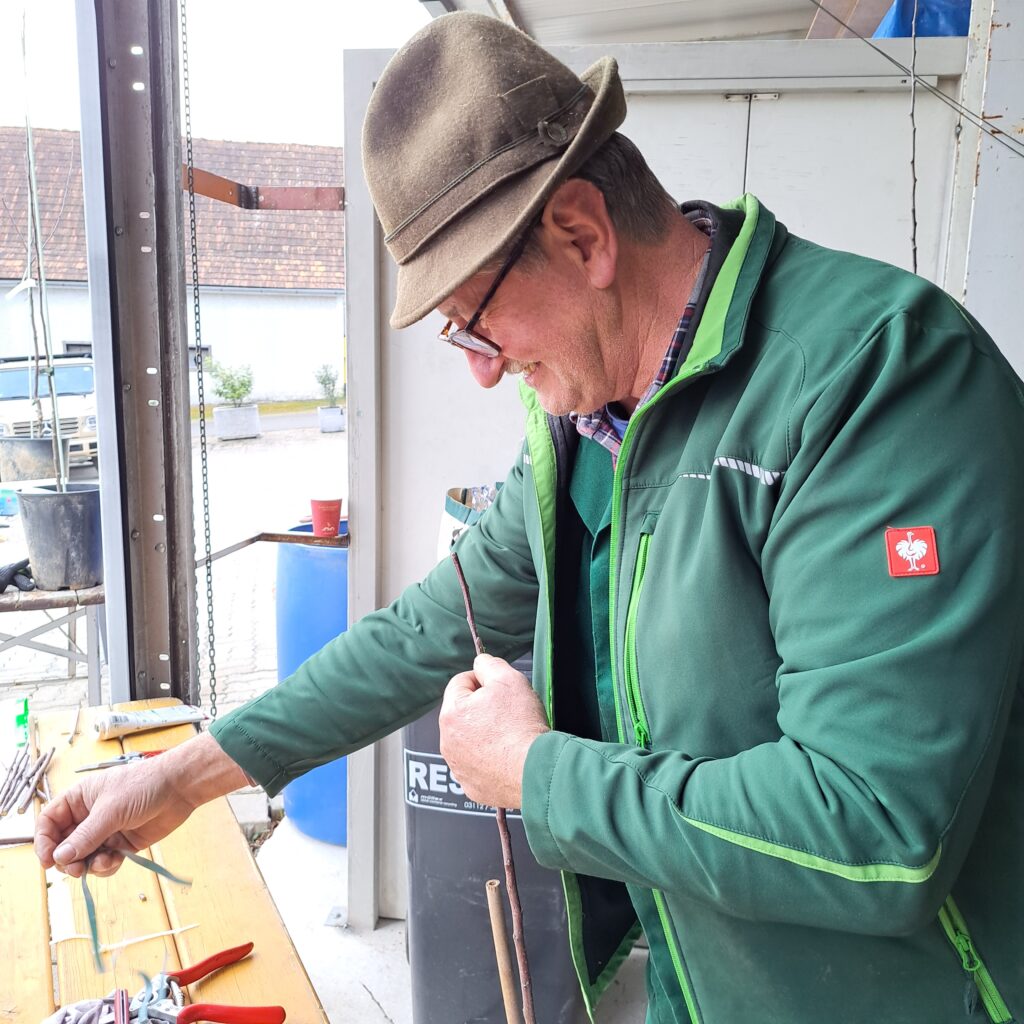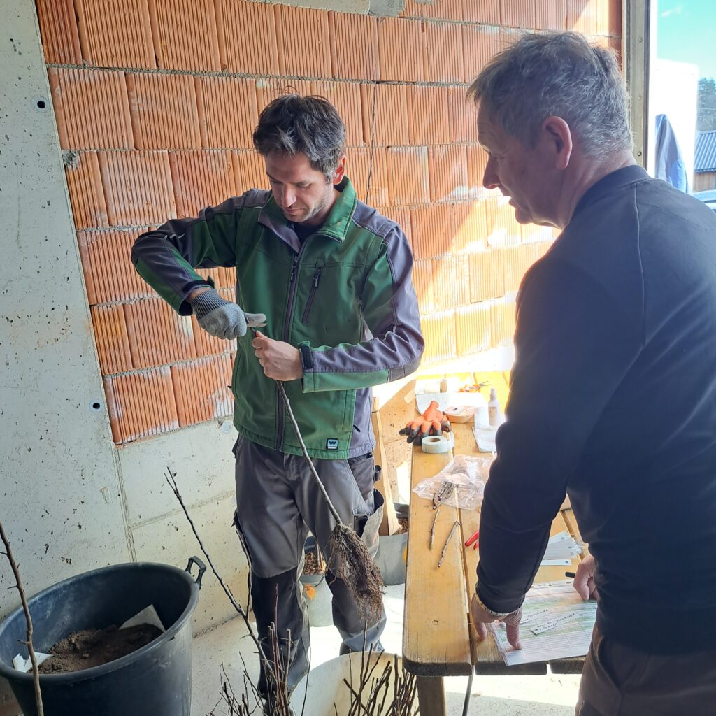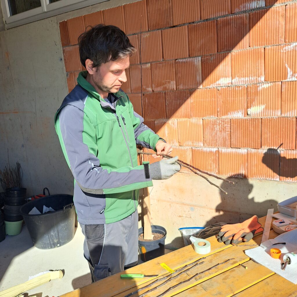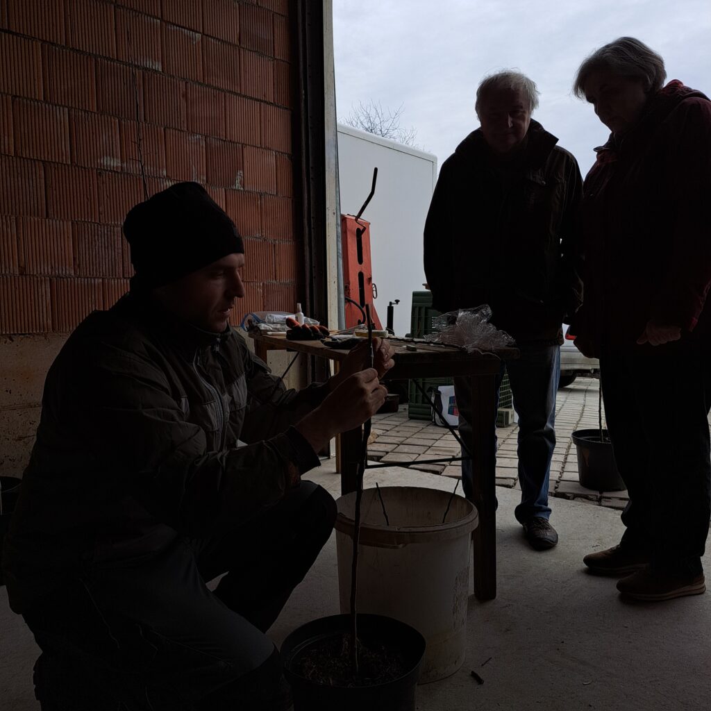 Am 19. Februar 2023 fand in Prüfing (St. Marein bei Graz) erstmals eine Veredlungsaktion der steirischen BaumwärterInnen statt. Dabei konnten Interessenten Edelreiser aus Ihren Gärten bringen und wir Baumwärter haben die Edelreiser auf Unterlagen veredelt. Dabei wurden mittelstark und stark wachsende Apfelunterlagen verwendet. Es wurden auch die weiteren Schritte erläutert, um ein bestmögliches Anwachsen der Bäume zu gewährleisten. Die Aktion war ein großer Erfolg und es wurden über 100 Bäume für unsere Streuobstwiesen und Gärten erzeugt! Wir planen diese Aktion auch im nächsten Jahr zu wiederholen und überlegen auch, diese auf andere Obstarten auszuweiten.